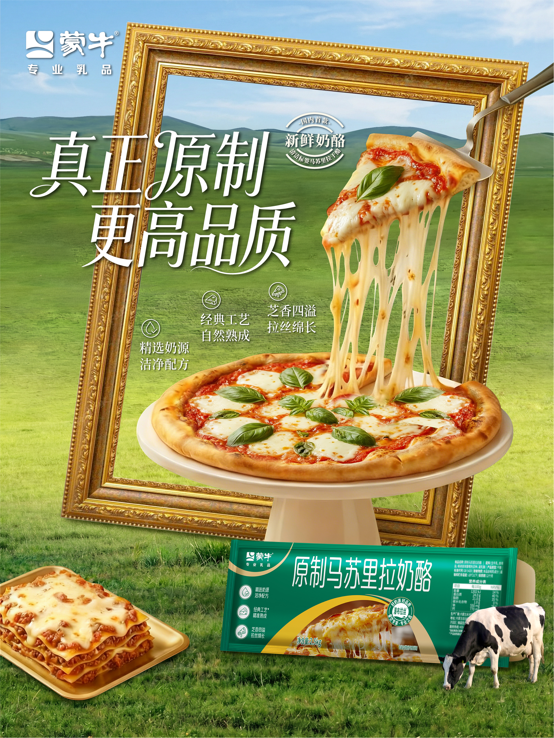 蒙牛集团旗下专注餐饮服务的专业品牌“蒙牛专业乳品”打造的清洁标签原制马苏里拉奶酪,应用“从牛奶开始,而非从凝乳块开始”的传统原制工艺。这不仅是高品质饮食体验与消费升级的直观体现,也为优化奶酪品类格局、回归产品真实价值指明方向。