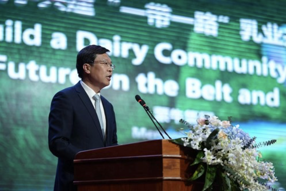 “蒙牛集团诞生于在内蒙古大草原,在中国母亲河黄河的滋养下茁壮成长。成立仅24年,蒙牛就成长为中国行业龙头企业,位列全球乳业八强。一头牛跑出了火箭速度,也从一头草原牛犇向了世界牛。”李鹏程在发言中,分享了蒙牛在推动高质量发展、共建“一带一路”方面的探索和实践。